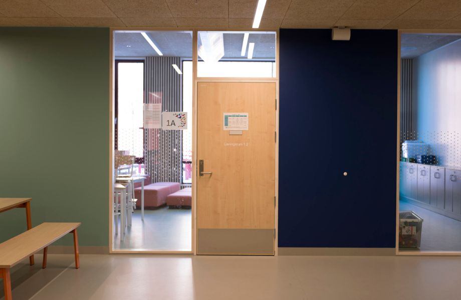 I januar 2023 kunne eleverne tage deres splinternye grundskole i brug på Fjellhamar i Lørenskog - Norges største folkeskole. Projektet til 100 millioner euro består af fire bygninger: skolebygningen, to multifunktionshaller og en swimmingpool. Valget af dekorer fra Formica® Doors Collection stemmer overens med skolens moderne design og sikrer langsigtet modstandsdygtighed, hvilket er afgørende for et travlt uddannelsesmiljø.