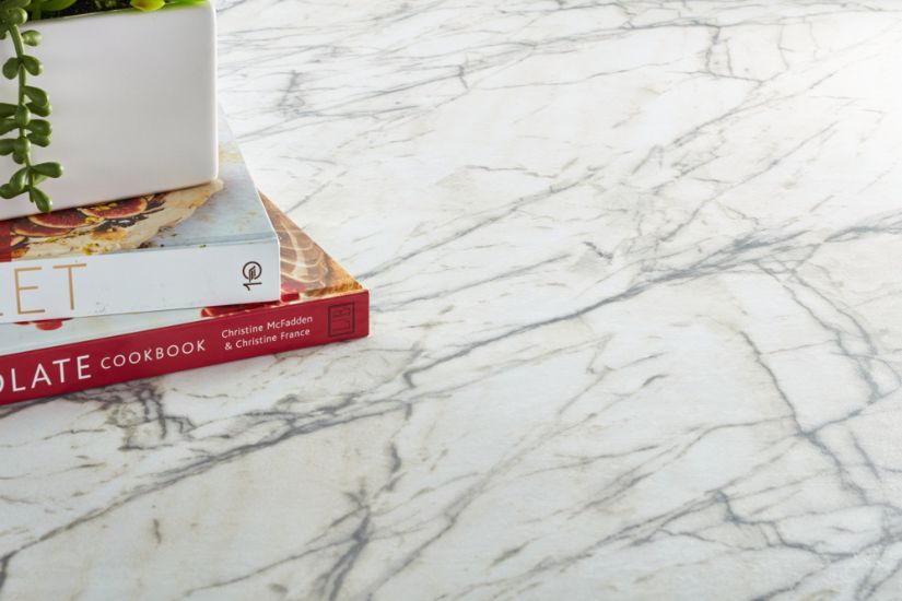 If you’ve got an old table or desk gathering dust, refurbish it with a hard-working laminate top to give it new life. This desk in 7407-34 Marmara Gray makes a classy statement and can tuck nicely into a corner.