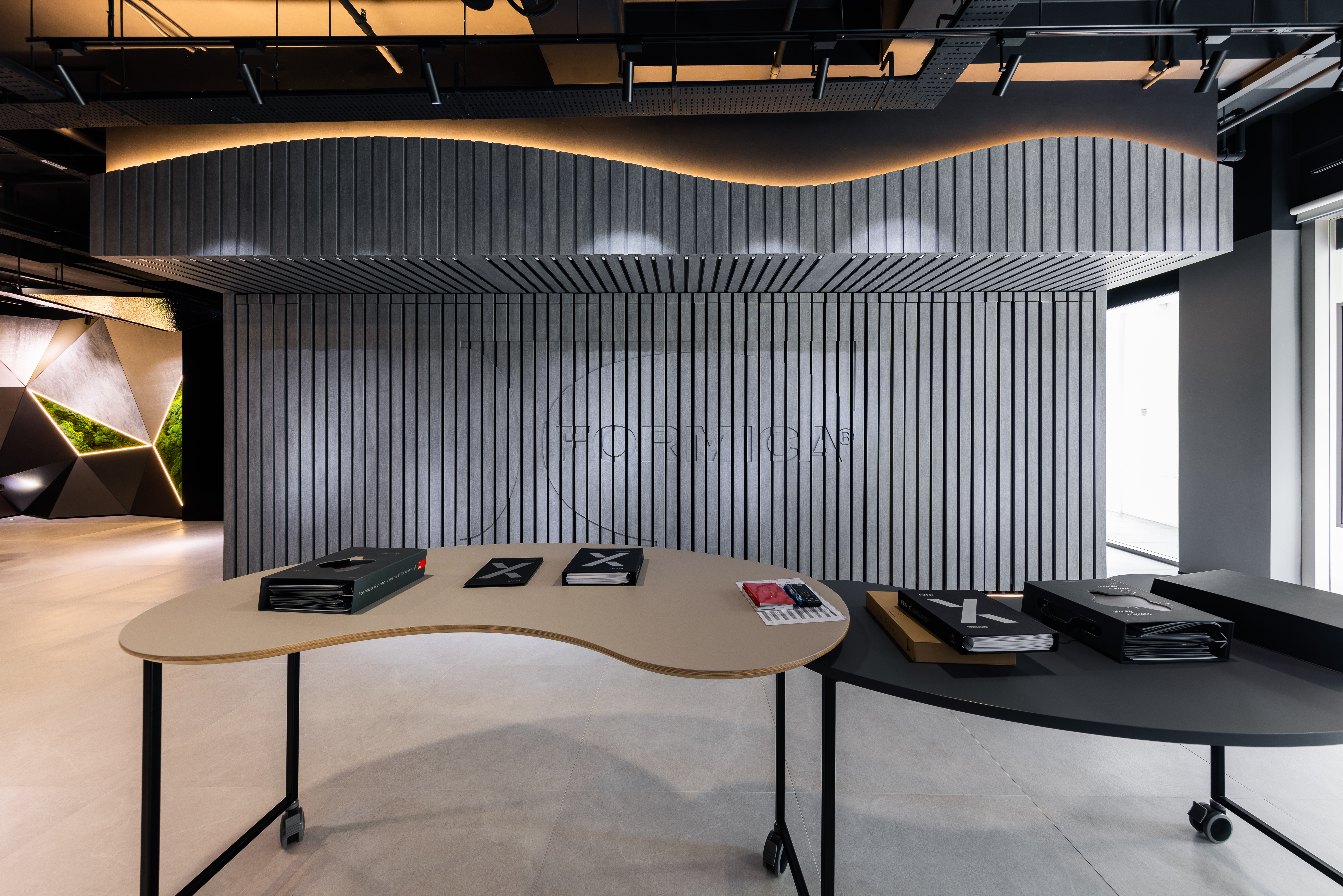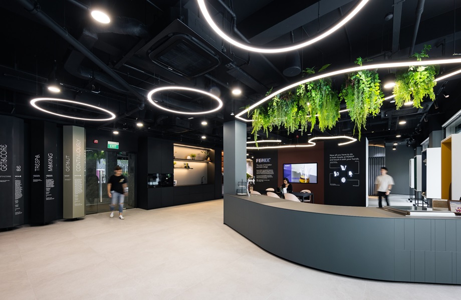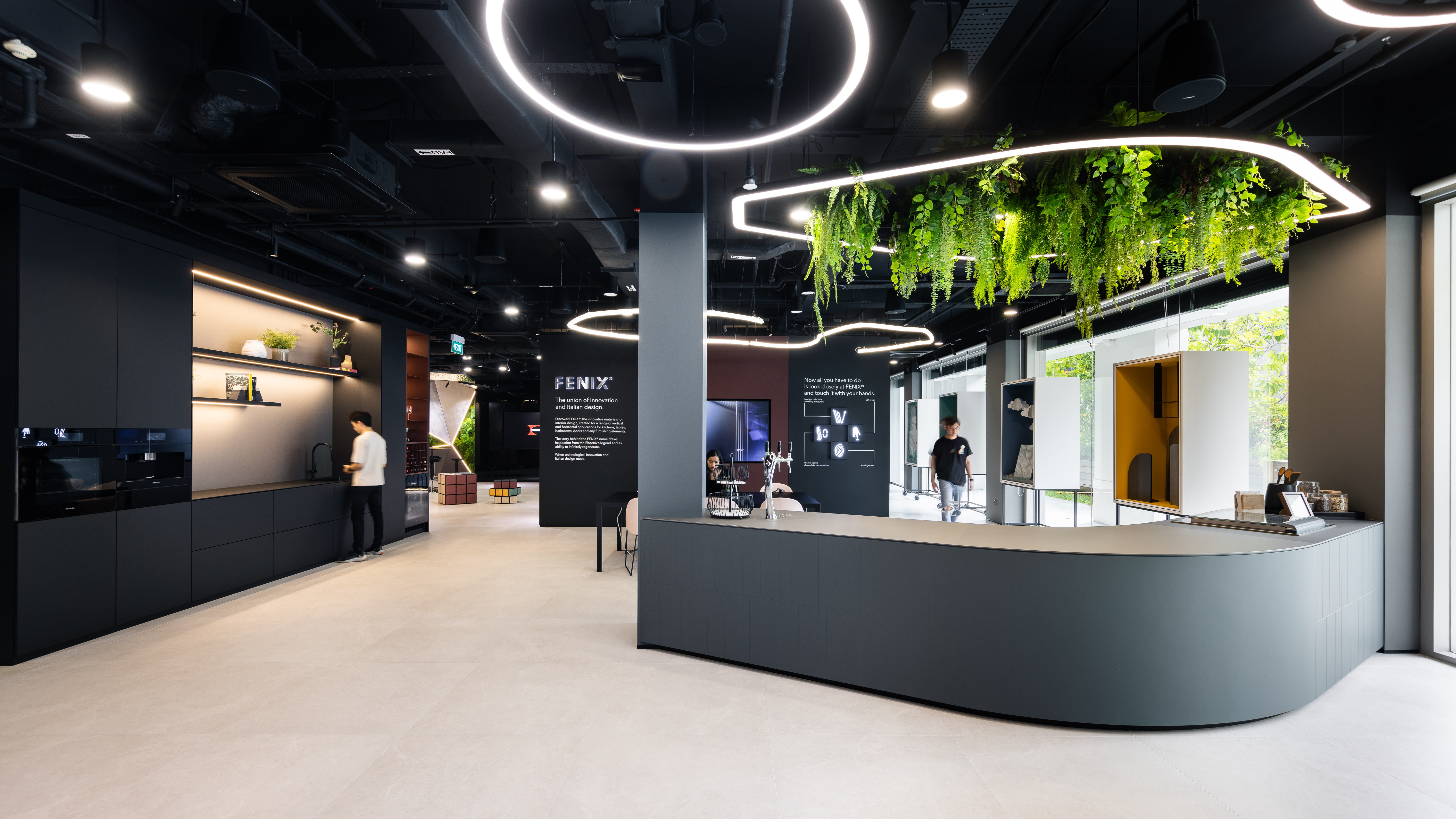 The feather in the cap of this showroom is definitely Formica’s own zone, which doubles as the company’s material library. Here, visitors and customers can experience Formica® Laminates in real scale and real size on 360˚ rotary pull out racks. The material library is equipped with cool, warm and daylight to help viewers better visualize the laminate designs in their preferred room lighting as if they were installed in their very own homes!