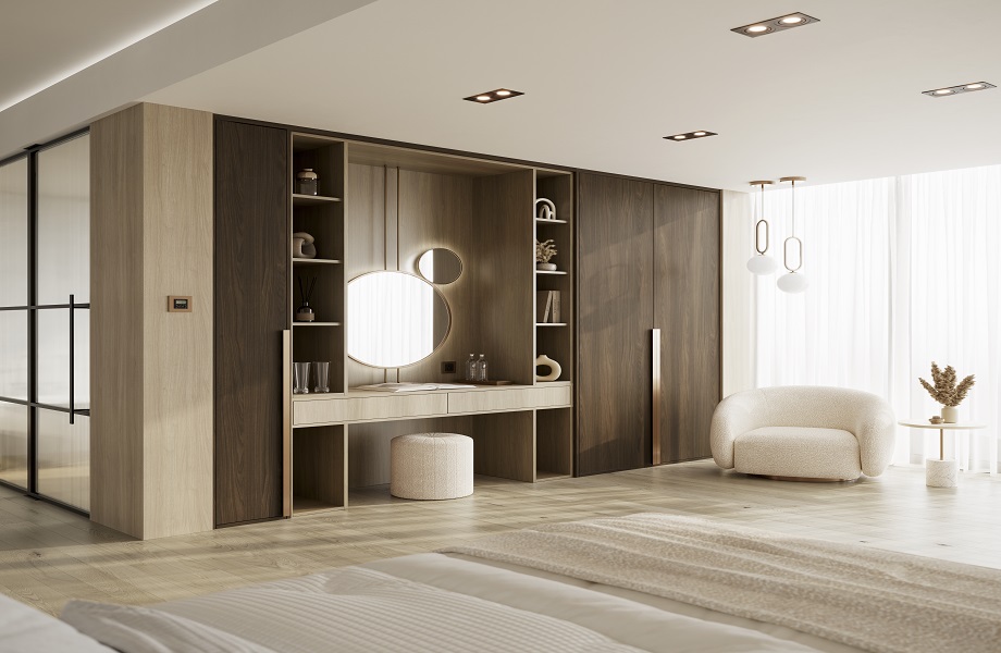 Light-coloured wood grain laminates can create the illusion of more space in a smaller area, making even a small studio apartment feel larger than it is. However, adding dark wood-grain laminates can make a large area, such as an entertainment room or living den, appear cosier and more intimate.