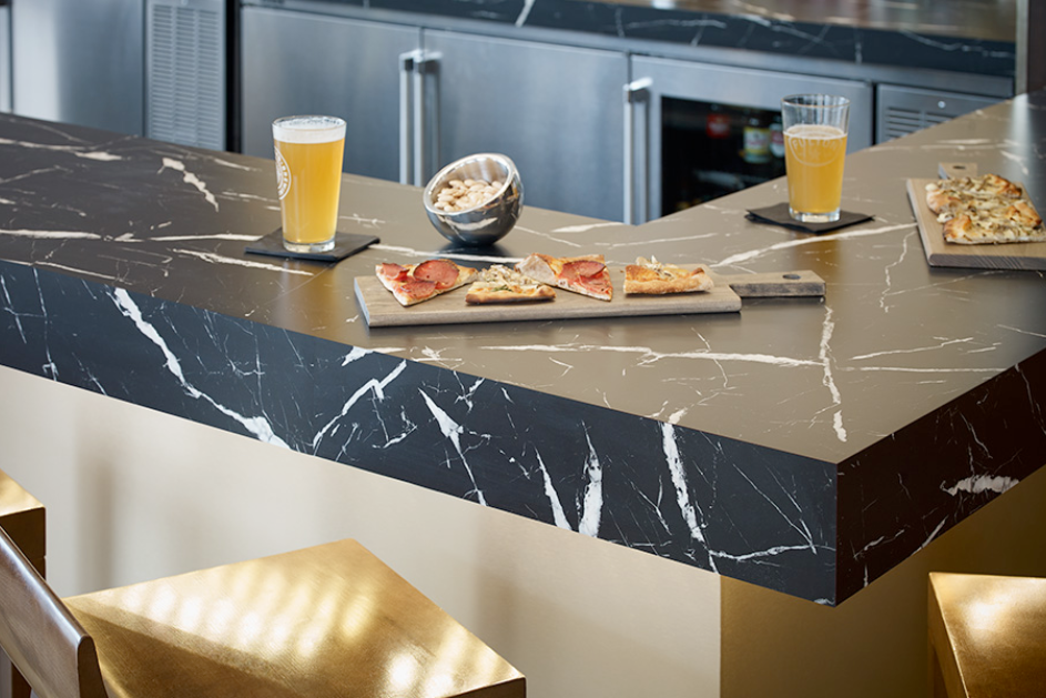 When used in large quantities, like on countertops and conference tables, this decorative panel can stand on its own and only needs a little help.