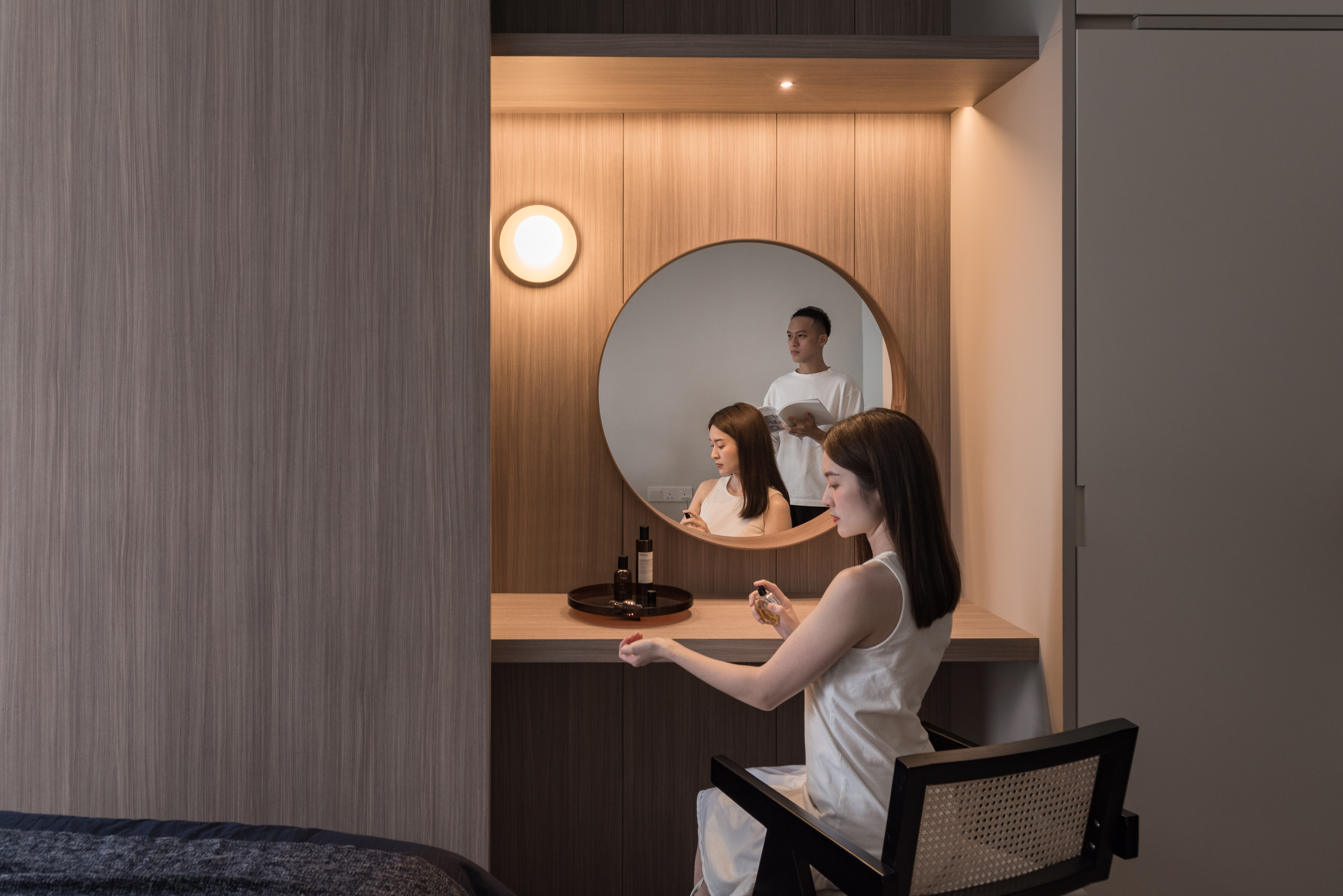 The dressing unit in master room was designed with a refined aesthetic to display the woodgrain at its maximum.