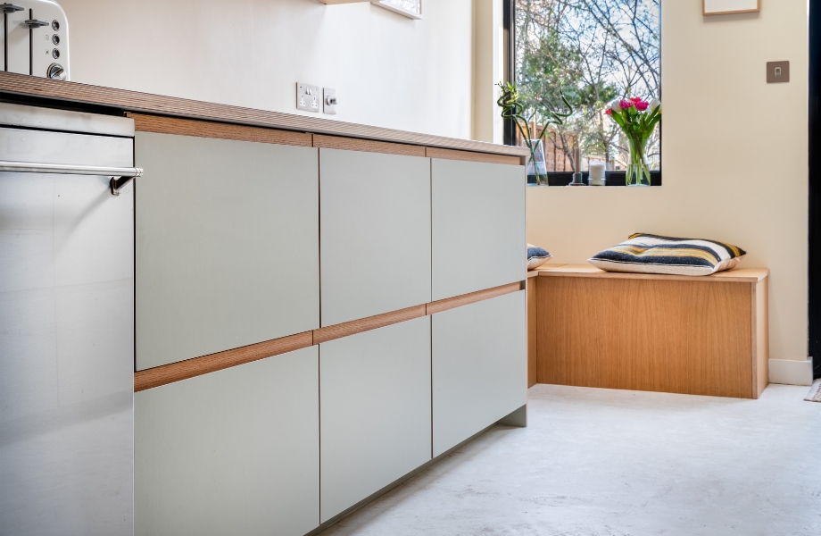 Kaakkois-Lontoossa sijaitsevan viktoriaanisen rivitaloasunnon kattavaan remonttiin sisältyi keittiön uudistaminen rauhoittavaksi ja toimivaksi tilaksi, joka antaa mahdollisimman paljon tilaa ja valoa modernia elämää varten. Vision toteuttamisessa oli mukana kaksi keskeistä materiaalia: Formica®-laminaatti F5344 Seed ja FENIX® Bianco Malé.