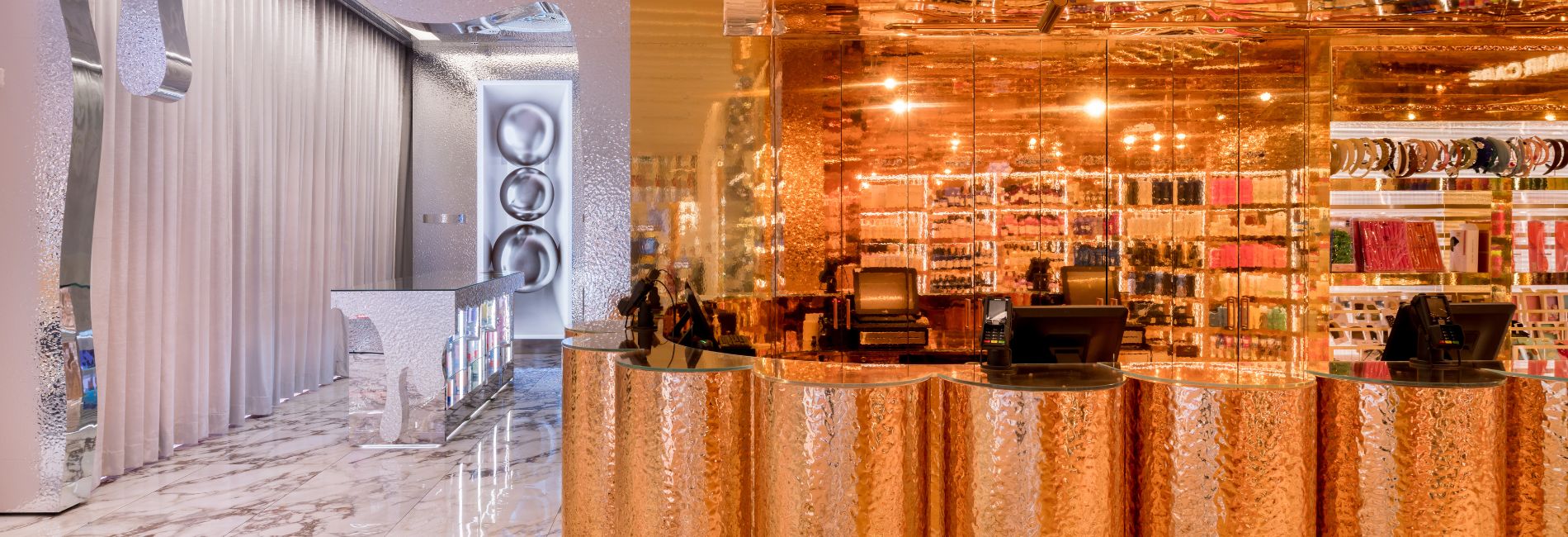 Les décors Homapal® Metals distribués par Formica Group ont joué un rôle essentiel dans le design surprenant du deuxième magasin phare de Perfumerías Primor, à Barcelone, en Espagne.