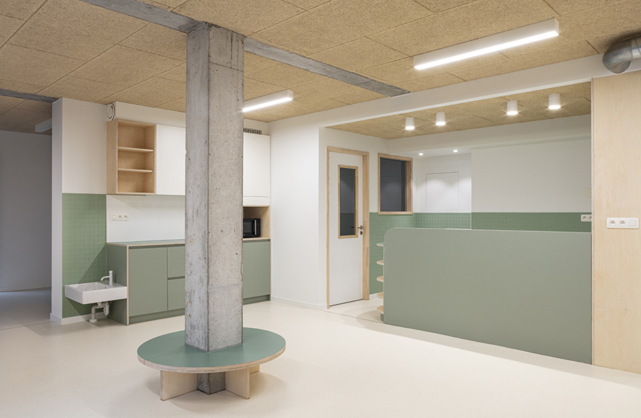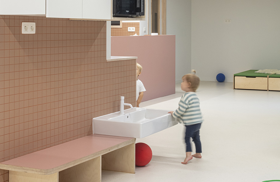 En mix av Formica®-laminat och metallytor från Homapal användes vid renoveringen av Ernestine Nursery i hjärtat av Ixelles, Bryssel. Förskolan har plats till 34 barn, indelade i två grupper.