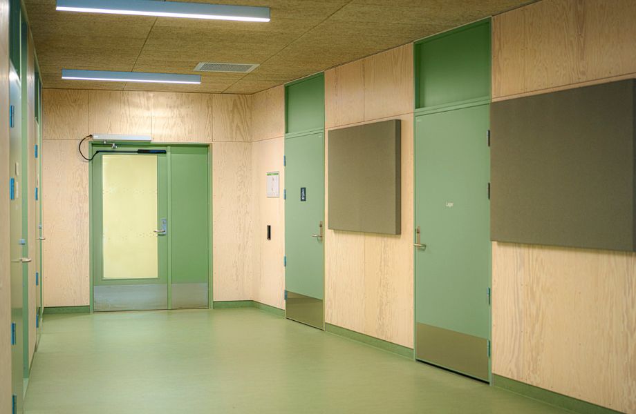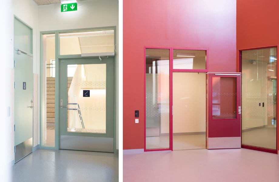 “Beslutet att välja Formica®-laminat drevs av dess enkelhet att underhålla, breda färgspektrum och exceptionella motståndskraft. I en grundskola så främjar den mångfaldiga färgpaletten inte bara en positiv atmosfär för inlärning, utan den tjänar även praktiska syften—Formica®-laminat är preventivt mot slitage och säkerställer att dörrar håller sig rena och presentabla, vilket är nödvändigt för att upprätthålla en gynnsam miljö.” Nordic Door