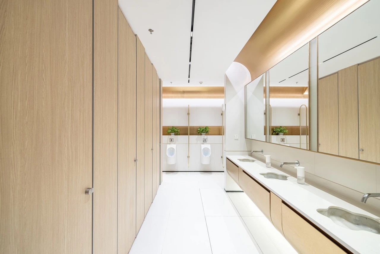 抗倍特洁菌板防水和耐潮湿的特性保证了卫生间能够长期处于一个干爽清洁的环境,有效抑制细菌滋生,营造健康舒适的公共空间。