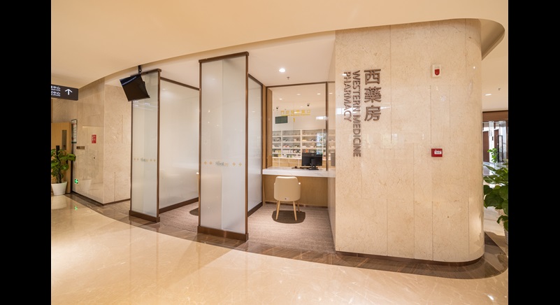 皇家丽肿瘤医院的接待、洽谈、药房等区域,均使用了富美家®色麗石®制作的台面,不仅具有天然石材带来的视觉效果,还可以有效对抗细菌、同时更容易清洁,为患者提供干净、卫生的就医环境。与富美家®木纹装饰的柜体搭配,更是相得益彰。