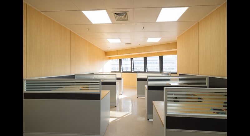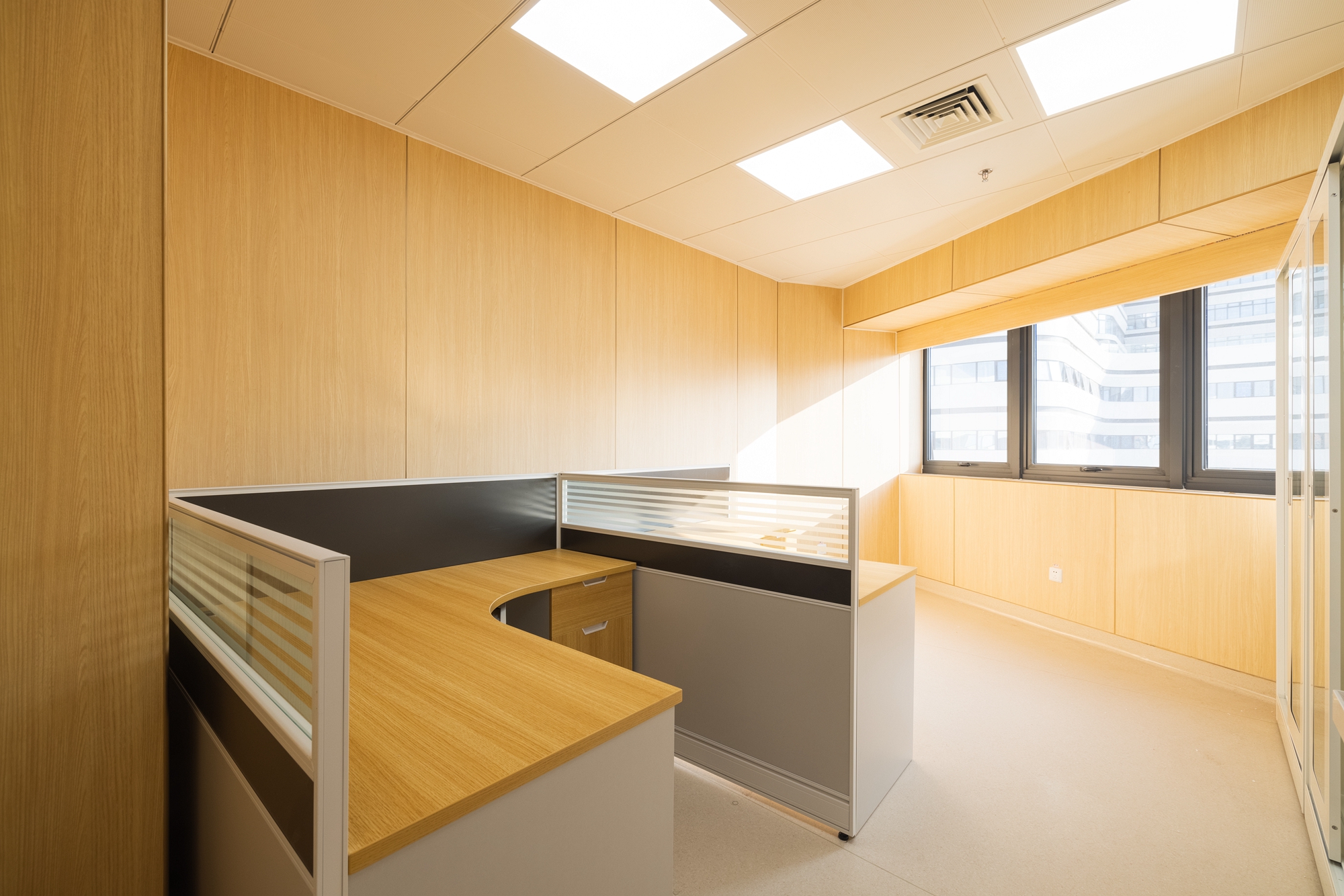中心的办公室和会议室区域应用了火立克®+洁菌板木纹系列,贴近自然的气息,和细腻逼真的纹理,构筑舒适宁静的办公和沟通空间。