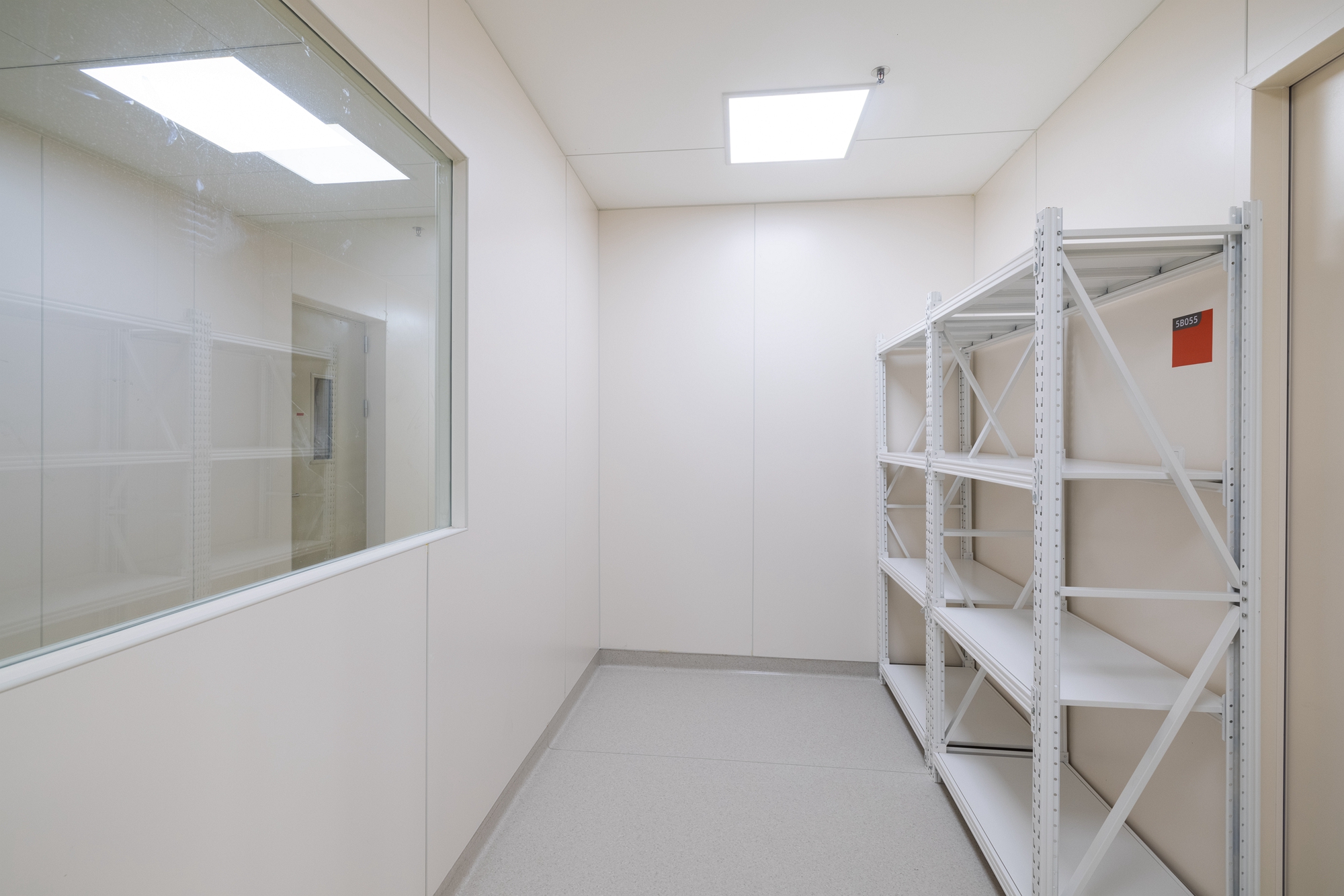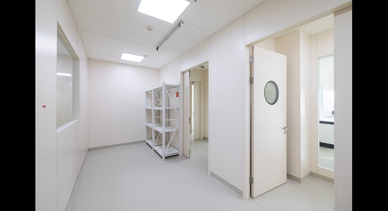 中心洁净空间在设计上要求墙面材料与天花板材料完美对缝衔接,以确保每一处细节的美观度,这对墙体和天花板系统的施工工艺提出了很高的要求。火立克®+洁菌板具有优越的物理性能,强大的可塑性支持多种安装方式,轻松应对各种空间区域,施工便捷、易于维护。