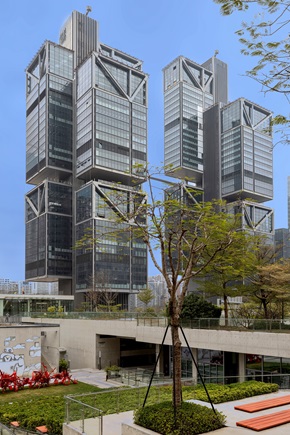 汉京中心坐落于深南大道上得天独厚的位置,由Morphosis 建筑事务所设计,采用核心筒外置的设计手法,最大化建筑平面的灵活性,将流线与各类基建设施置于塔楼外侧,对摩天塔楼类型建筑进行了再定义。汉京中心通过创新的方式,重新诠释了公共空间、工作空间和交通动线空间的相互关系,打破了商业办公楼传统设计的桎梏。其裙房用于高端零售和餐饮,办公塔楼则提供灵活而开阔的办公空间。