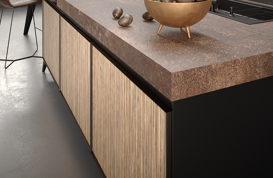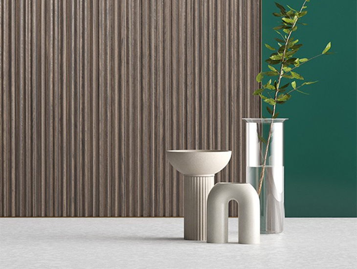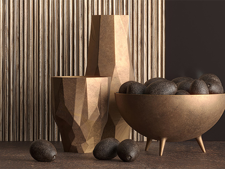 棱纹浮雕呈现富有韵律感的几何形状,为整体设计创意增添动感与平衡。