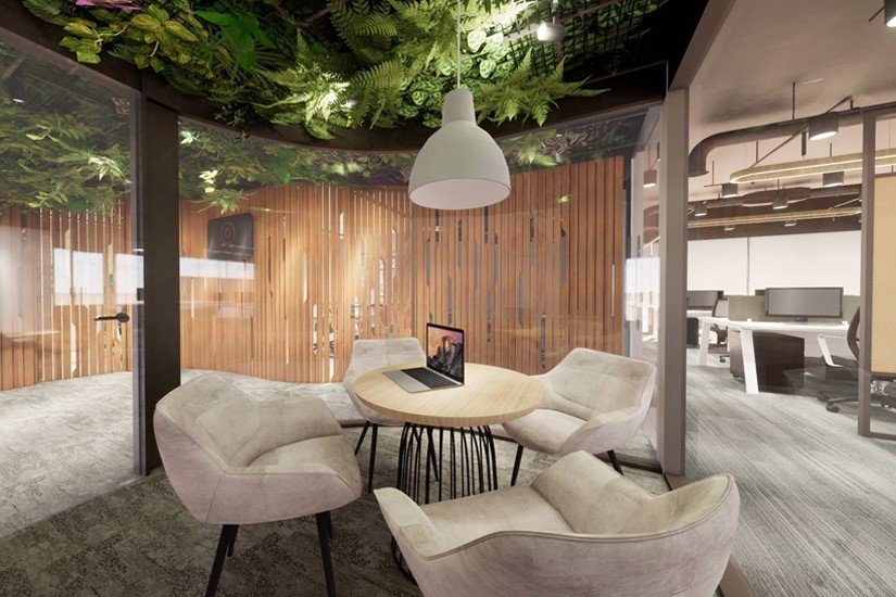 什麼是理想的辦公空間?周天民憑藉「為人設計」的理念,用空間作品帶我們找到答案。透過三面採光讓陽光灑落室內,帶來自由奔放的氣息;門廳則採用植栽天花,恰到好處的綠意頓時舒緩工作壓力。