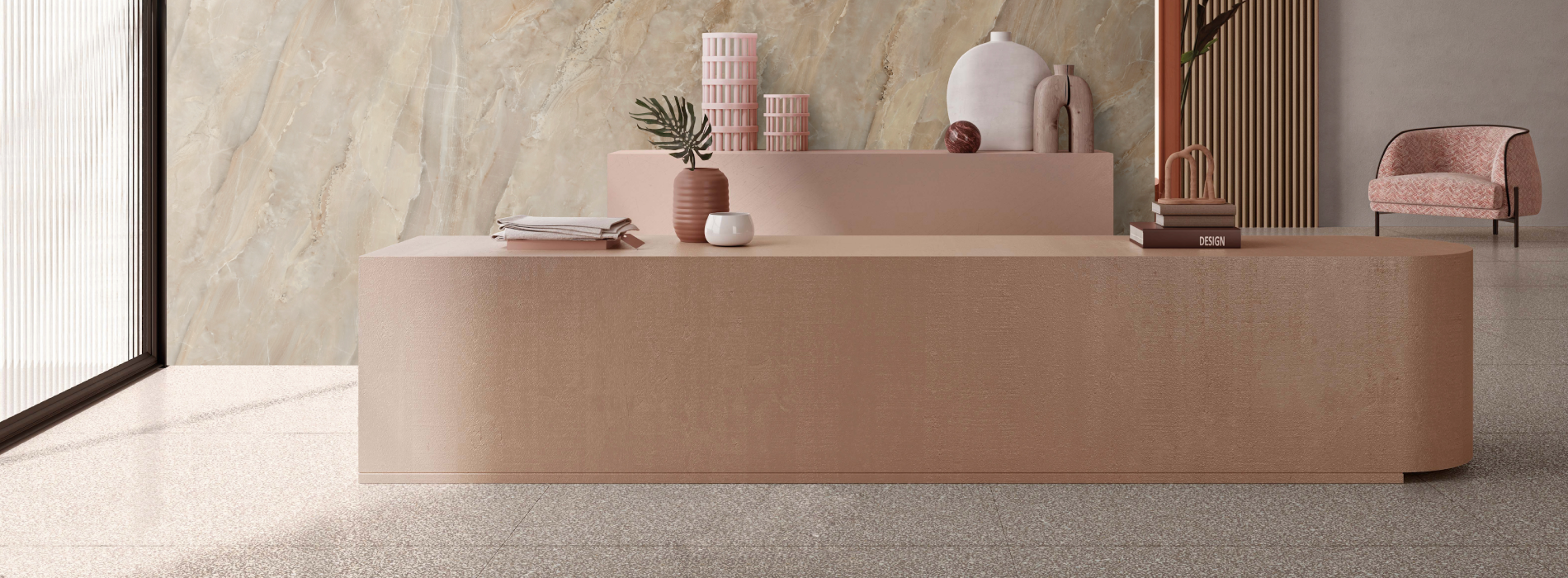 - 三面連拼設計,巧妙延展石紋全景。